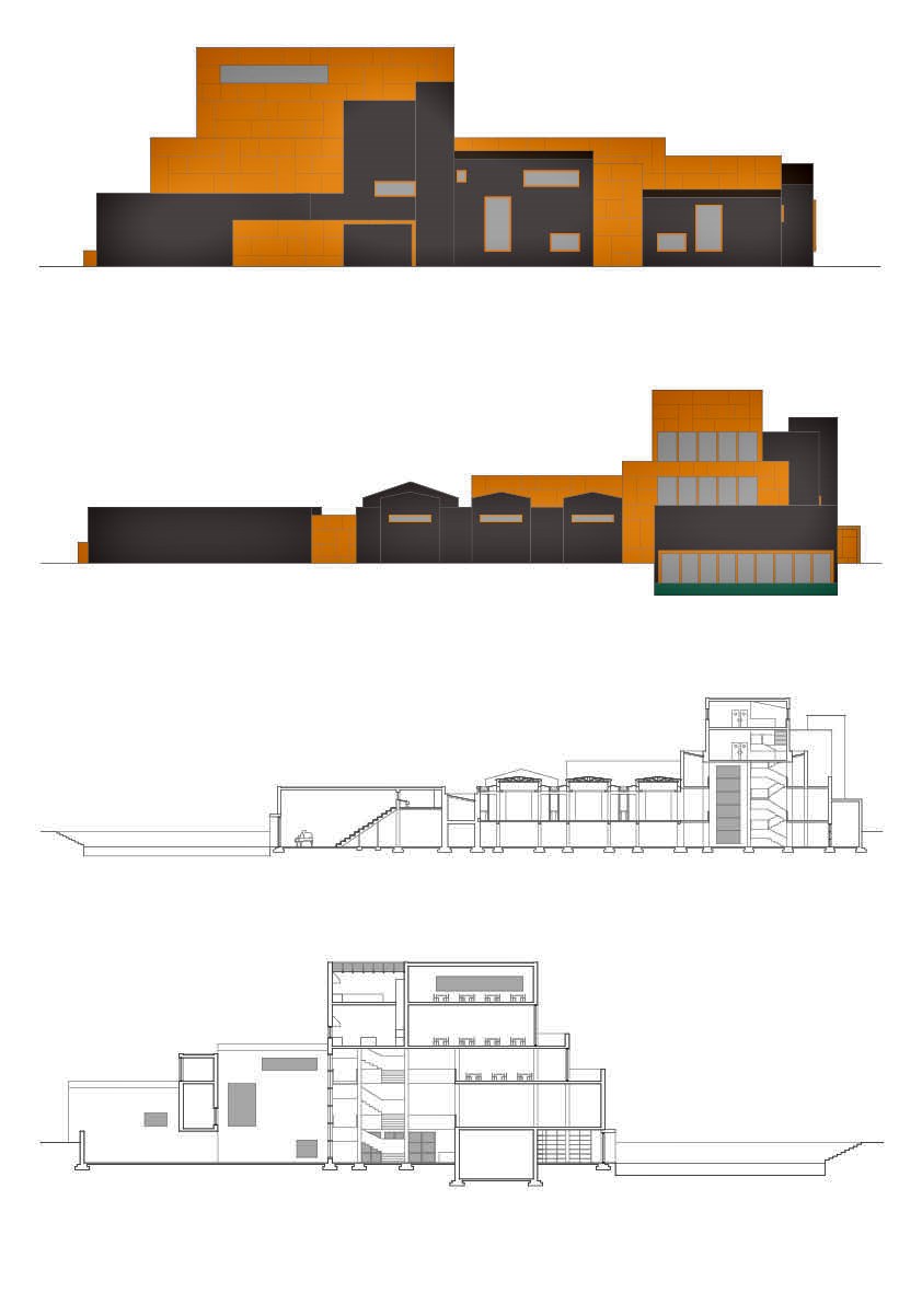 The building will become a new interesting place for technology, art, architecture, design, food, lectures and music – where ecology and sustainability is the main theme. The new extension will be part of the original structure and is inspired by the existing building. The old facade will be plastered in dark gray – and window frames in corten steel, which has a variation of depths – “growing out” – of the existing window holes . All new addition is constructed in corten steel and with natural skylight.