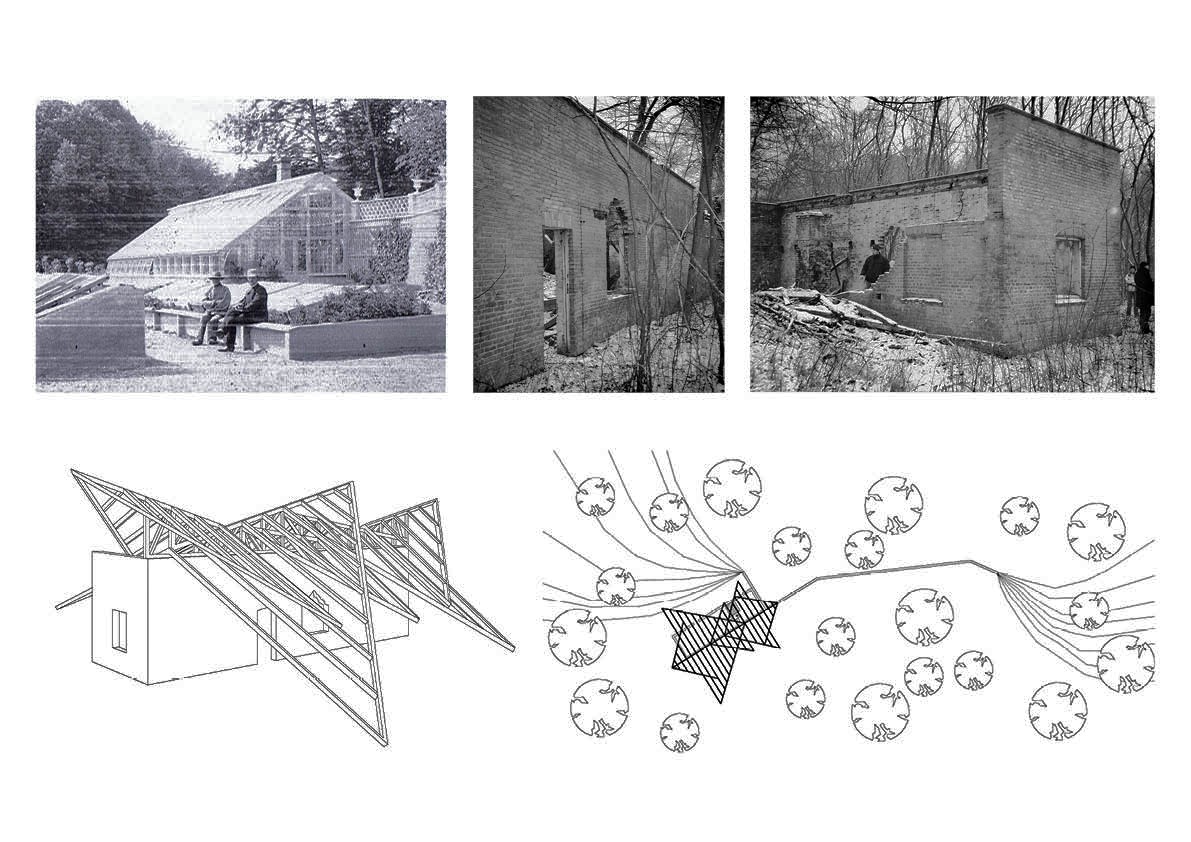 Enrum park – south of Vallenbæk, is one of “strandvejens” oldest country houses – originally built in 1731. In the old park – one now deserted landscape – lie the ruins of the old orangery. This ruin and its area is tranformed into a new pavilion. The new structure is based on the old ruin – and its wings covered with glass – creates an open outdoor space whith a natural flow of light and air. Construction in wood and glass.