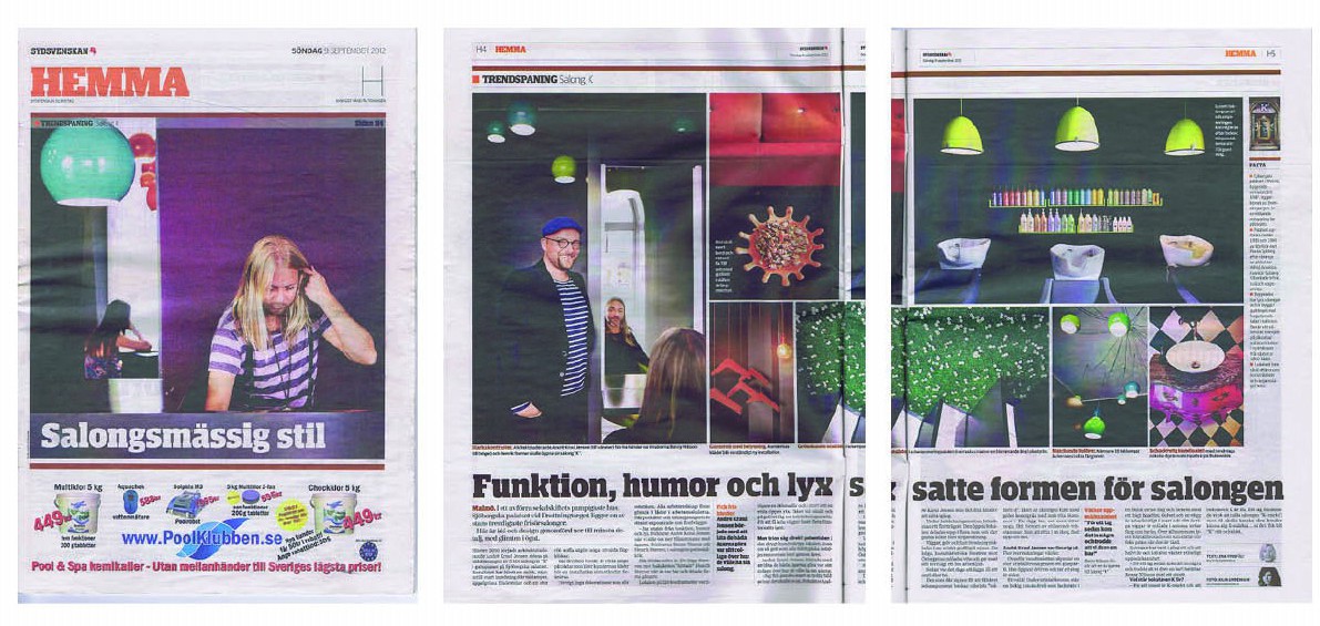 On Drottningtorget in Malmö is the Sjöbergska Palace, built in 1893 by architect Alfred Arwidius. In this building I was asked to create a hair salon. A place where many personalities and age groups meet and basically I worked with four keywords; cosiness – functionality – humor and luxury. For me, as an architect, it is important not only to create interesting design, but also a functionally environment. This resulted in a hair salon with carefully matched colors that inspires and, at the same time, gives you a feeling of cosiness – with surprises waiting just around the corner.